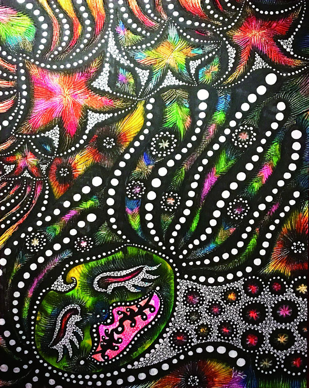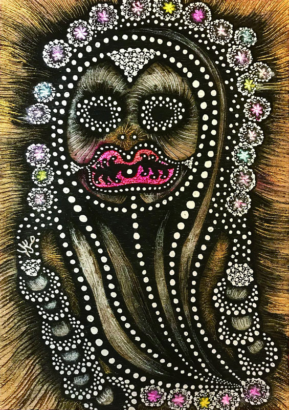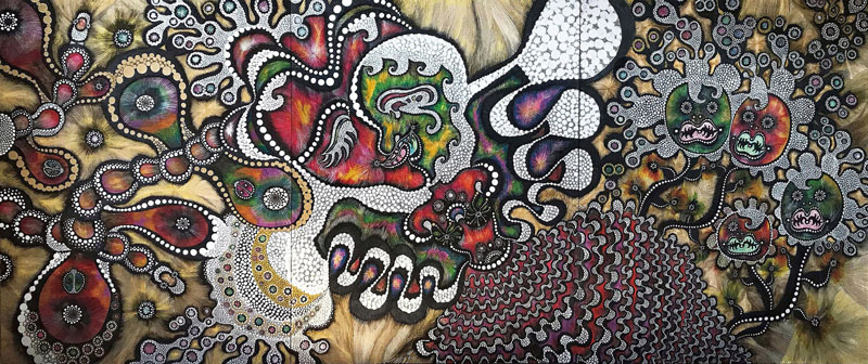 作為一名油性麥克筆藝術家,她的作品展現與生俱來、自然奔放的想像力,