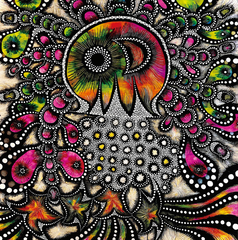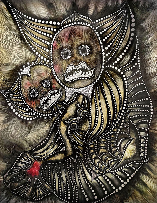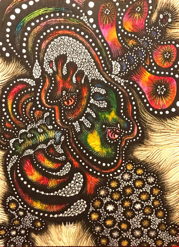 Painting of Oil ink, Color ink, India ink,mineral pigments,and carving on wood board.(basswood plywood)
